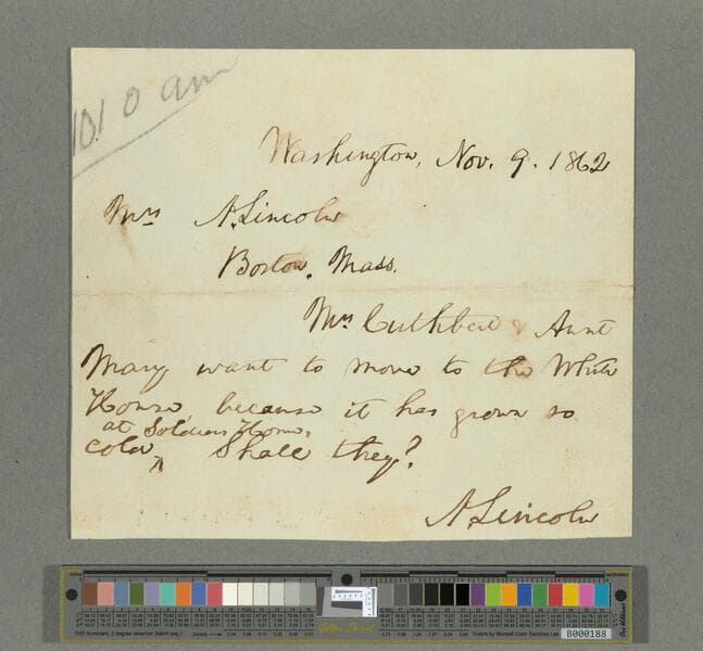 Abraham Lincoln, Washington, D.C, letter to Mary Todd Lincoln, Boston