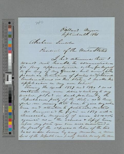 David Logan, Portland, Oregon, letter to Abraham Lincoln