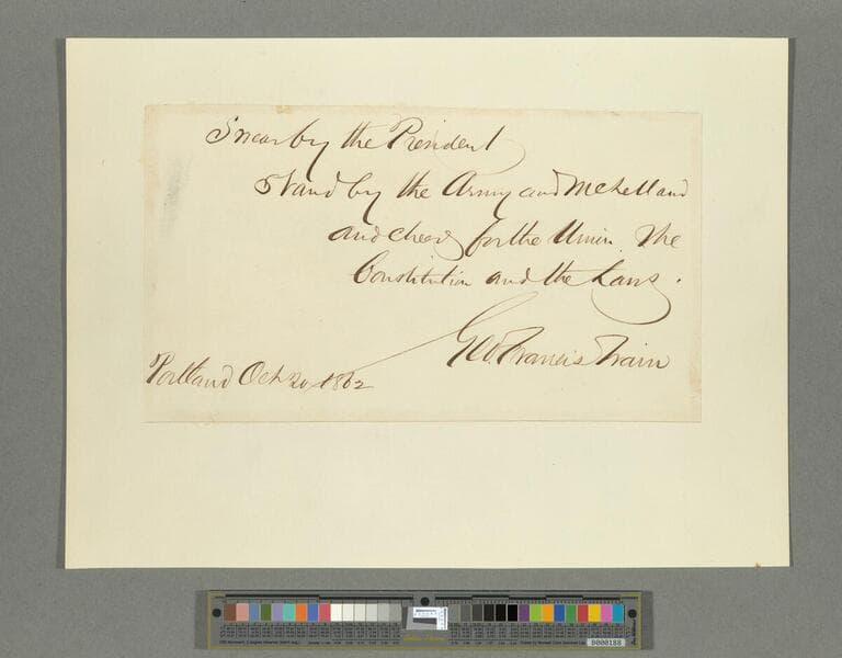 Autograph document signed. Includes carte-de-visite portrait of Train with James S. Earle & Son imprint. (1 page)