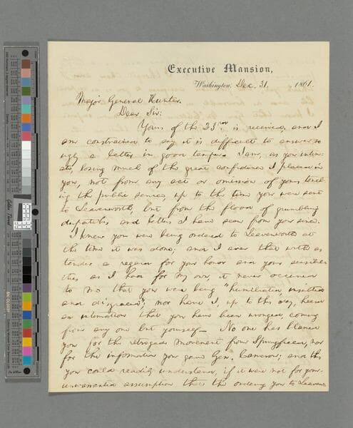 Abraham Lincoln, Washington, D.C., letter to David Hunter
