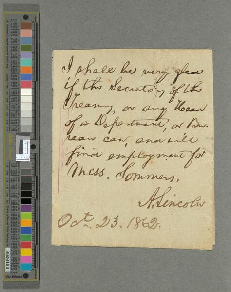 Abraham Lincoln endorsement of employment application for unidentified woman