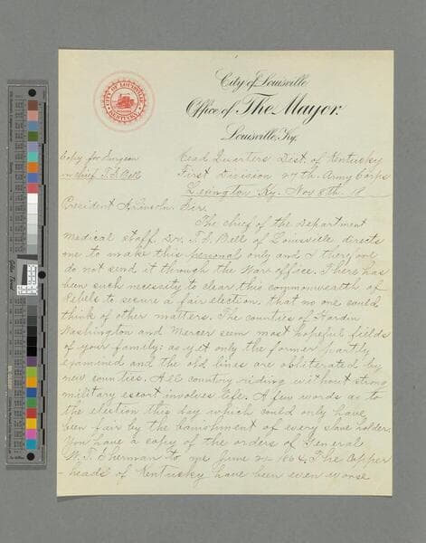 Stephen G. Burbridge, Lexington, Kentucky, letter to Abraham Lincoln