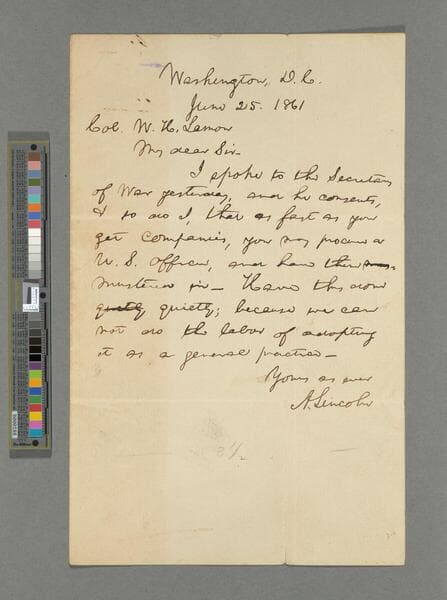 Abraham Lincoln, Washington, D.C., letter to Joseph Holt