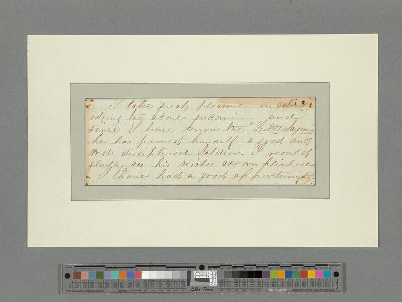 Autograph note signed. Written on the reverse of a note regarding the "Little Sergeant." (1 page)