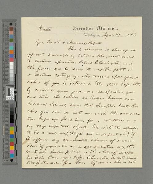 Abraham Lincoln, Washington, D.C, letter to David Hunter and Samuel F. Du Pont