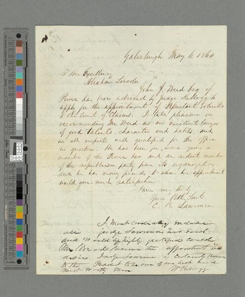 Charles B. Lawrence, Galesburg, Illinois, letter to Abraham Lincoln