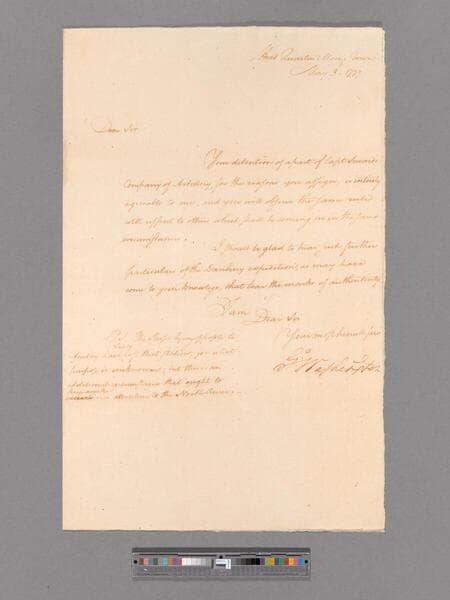 Letter from George Washington, headquarters Morristown, to the Commanding Officer Brigadier General Alexander McDougall, Peekskill