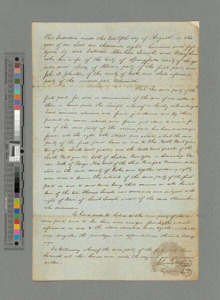 Abraham Lincoln and Mary Lincoln indenture to John D. Johnston, Springfield, Illinois