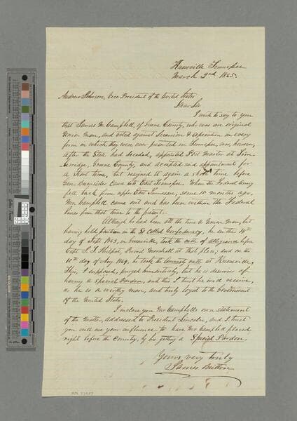 James Britton, Knoxville, Tennessee, letter to Andrew Johnson