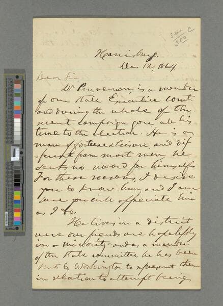 Simon Cameron, Harrisburg, Pennsylvania, letter to Abraham Lincoln