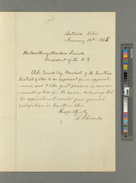 Reader W. Clarke, Batavia, Ohio, letter to Abraham Lincoln