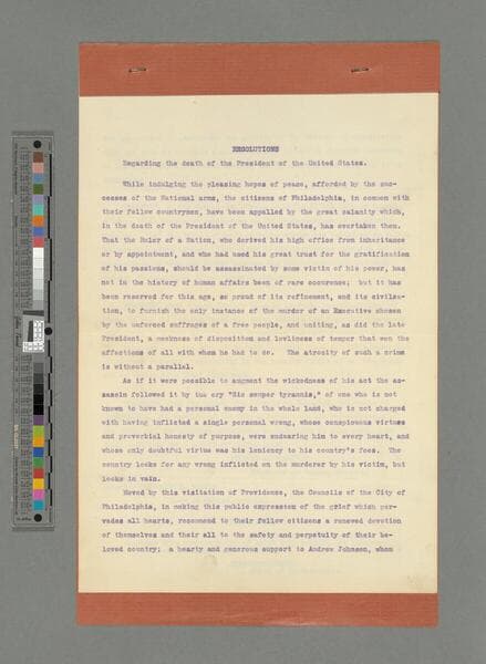 Mayor and City Councils, Philadelphia, copy of resolutions