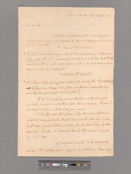 Letter from George Washington, headquarters Morristown, to Brigadier General Alexander McDougall