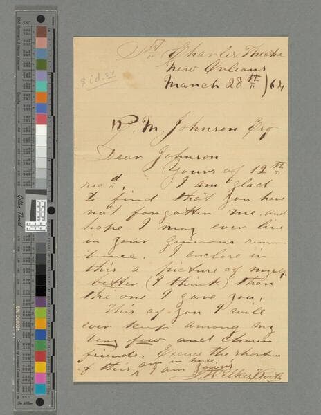 John Wilkes Booth, New Orleans, letter to R.M. Johnson