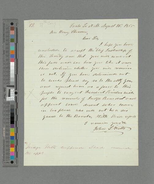 John S. Watts, Santa Fe, New Mexico, letter to Henry Sherman