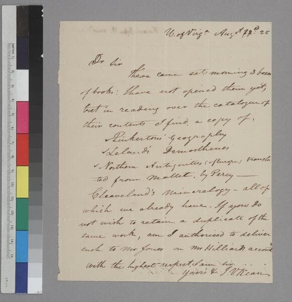 John V. Kean, University of Virginia, letter to Thomas Jefferson
