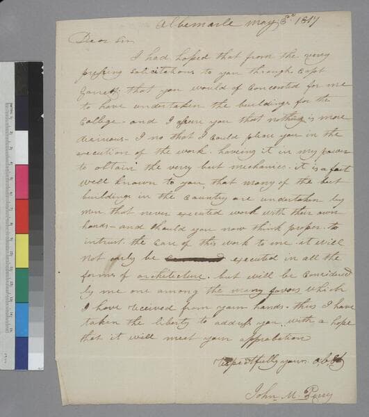 John M. Perry, University of Virginia, letter to Thomas Jefferson, Monticello