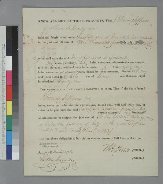 Thomas Jefferson, Albemarle County, bond to James Lyle