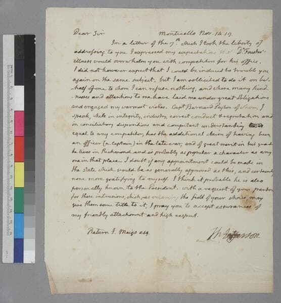 Thomas Jefferson, Monticello, letter to Return J. Meigs, Washington, D.C