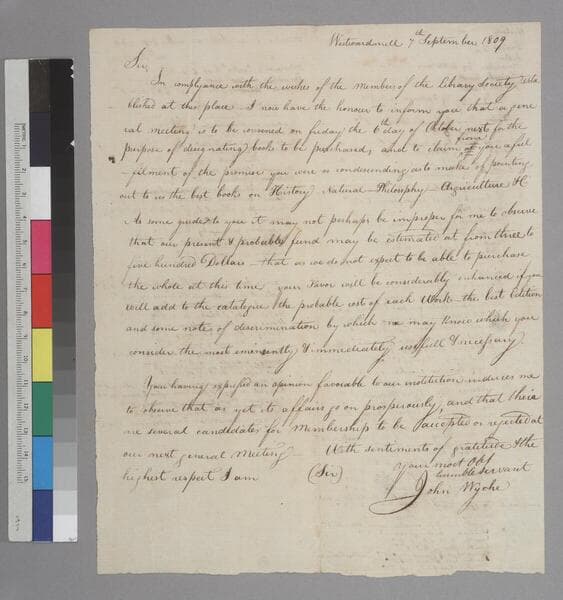 John Wyche, Westwardmill, letter to Thomas Jefferson
