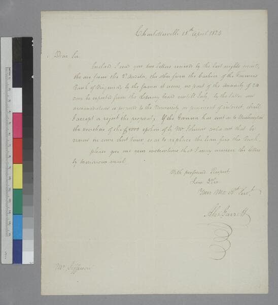 Alexander Garrett, Charlottesville, letter to Thomas Jefferson