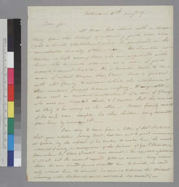 Granville Sharp Pattison, Baltimore, letter to Thomas Jefferson