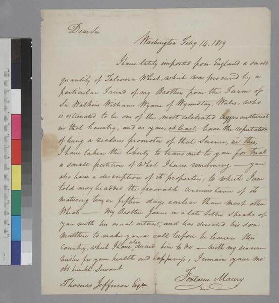 Fontaine Maury, Washington, D.C., letter to Thomas Jefferson