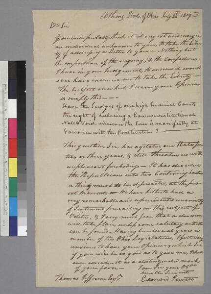 Leonard Jewett, Athens, Ohio, letter to Thomas Jefferson