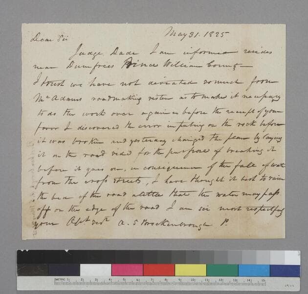 Arthur S. Brockenbrough letter to Thomas Jefferson