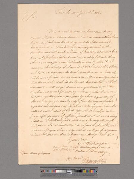 Letter from George Washington, Fort Loudoun, to Sir John St. Clair