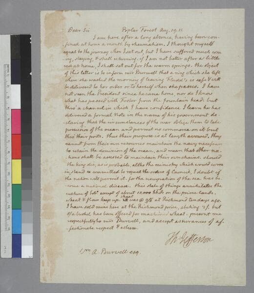 Thomas Jefferson, Poplar Forest, letter to William A. Burwell, near Franklin C.H., Virginia