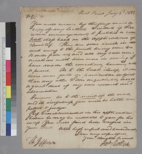James Cutbush, West Point, letter to Thomas Jefferson, Monticello