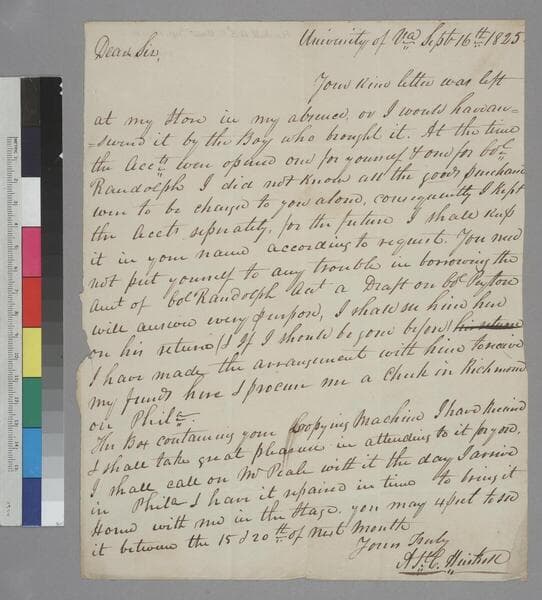 A. St. C. Heiskell, University of Virginia, letter to Thomas Jefferson