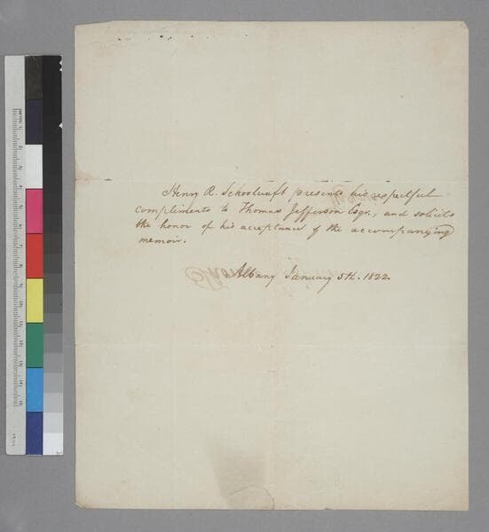 Henry R. Schoolcraft, Albany, letter to Thomas Jefferson, Virginia