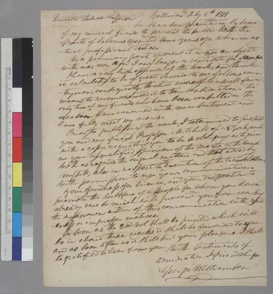 George Williamson, Baltimore, letter to Thomas Jefferson