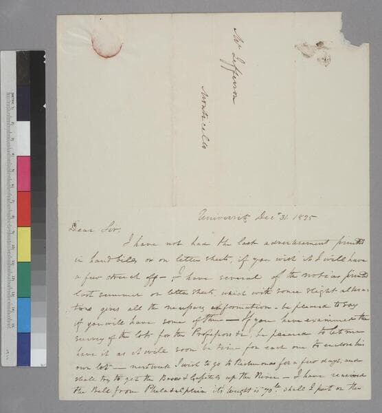 Arthur S. Brockenbrough letter to Thomas Jefferson, Monticello