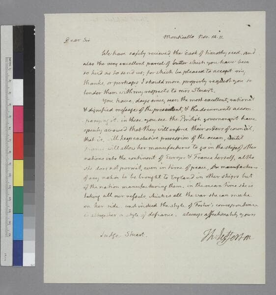 Thomas Jefferson, Monticello, letter to Archibald Thweatt