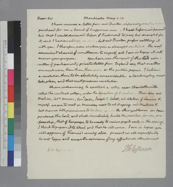 Thomas Jefferson, Monticello, letter to Francis Wayles Eppes