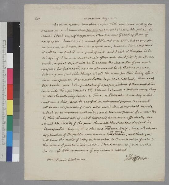 Thomas Jefferson, Monticello, letter to Joseph Wheaton