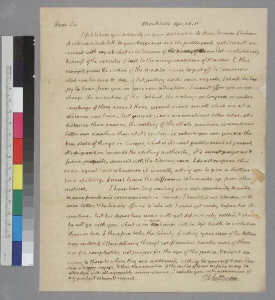 Thomas Jefferson, Monticello, letter to Joel Barlow, Washington, D.C