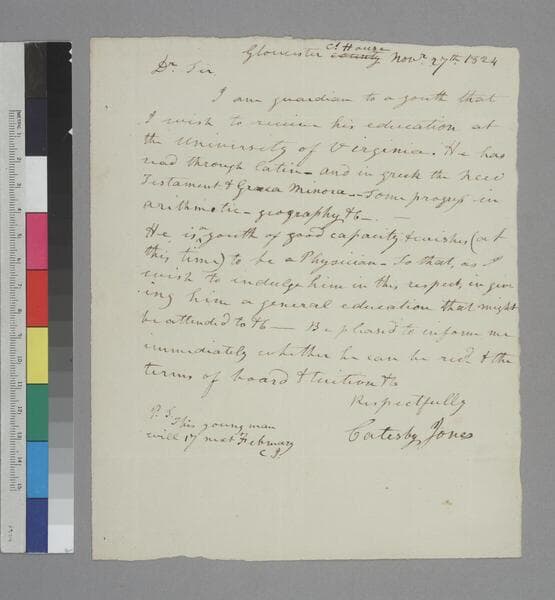 William Harris Jones, University of Virginia, letter to Thomas Jefferson