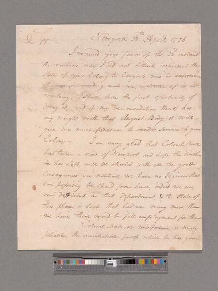 Letter from George Washington, New York, to Governor Nicholas Cooke