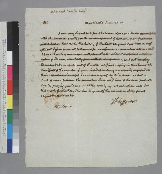 Thomas Jefferson, Monticello, letter to Dominick Lynch