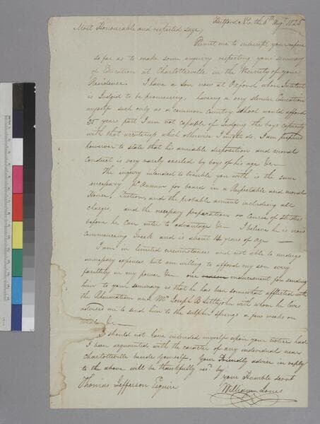 William Harris Jones, University of Virginia, letter to Thomas Jefferson