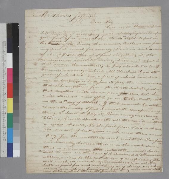 Thomas Mallett, Philadelphia, letter to Thomas Jefferson