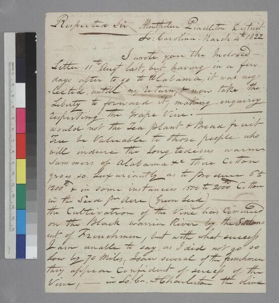 Samuel Maverick, Montpelier Pendleton District, South Carolina, letter to Thomas Jefferson