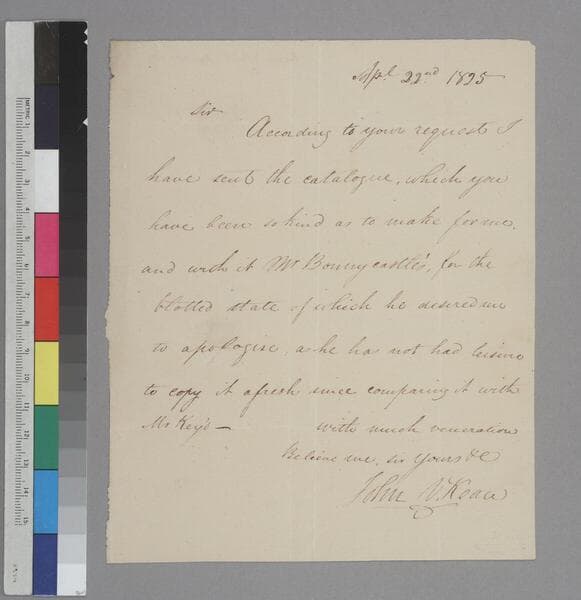 John V. Kean, University of Virginia, letter to Thomas Jefferson