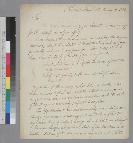 Edward Wiatt, Cumberland, Maryland, letter to Thomas Jefferson