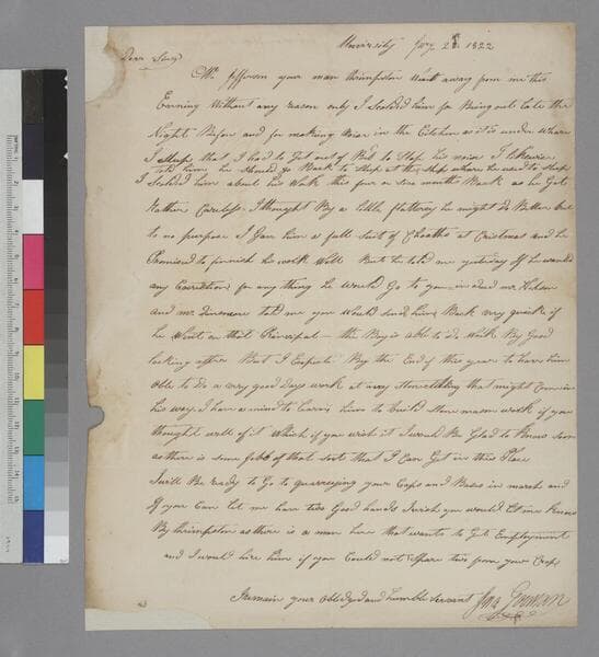 James Oldham, University, letter to Thomas Jefferson, Monticello