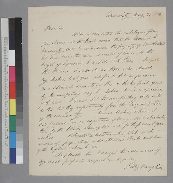 Robley Dunglison, University of Virginia, letter to Thomas Jefferson